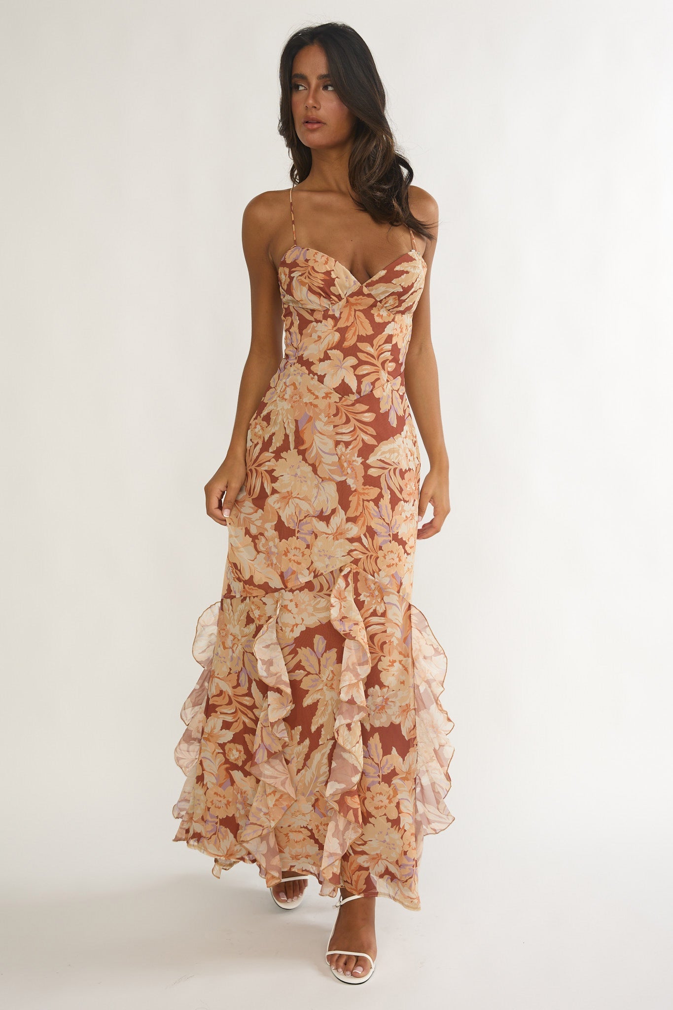Make an entrance in our stunning Charlisa maxi dress. We are obsessed with its strappy back and ruffle trim detail. It's just what you need for a birthday brunch with your girlies, team it with nude heels and a saddle bag for a head-turning look.