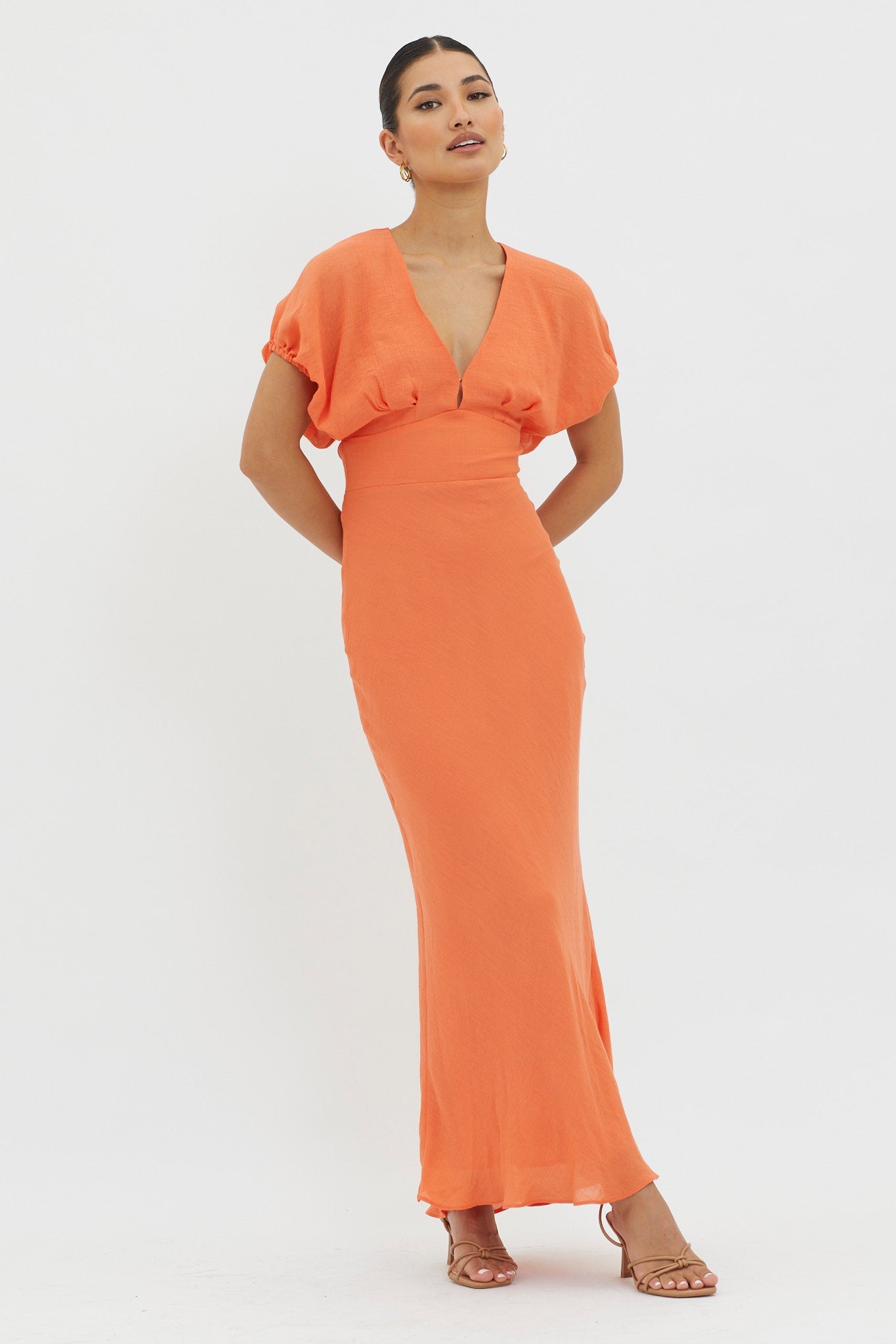 Heads will turn when you walk by wearing our chic Dare To Live maxi dress. Featuring a V-neckline and cut-out detail in the back, it's perfect for a wedding or birthday brunch with your BFFs. Team it with tan mules and a tote for a sophisticated look.