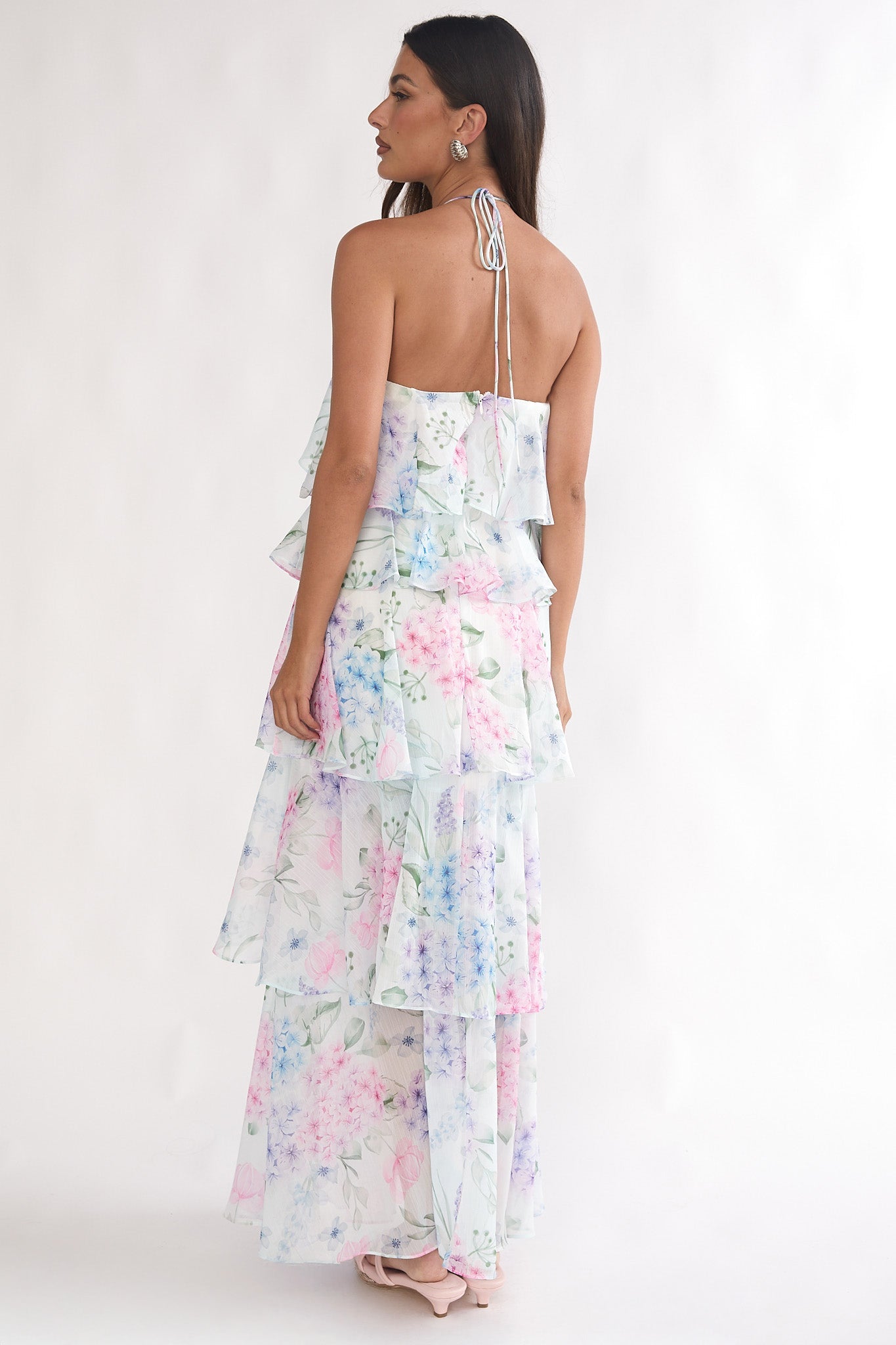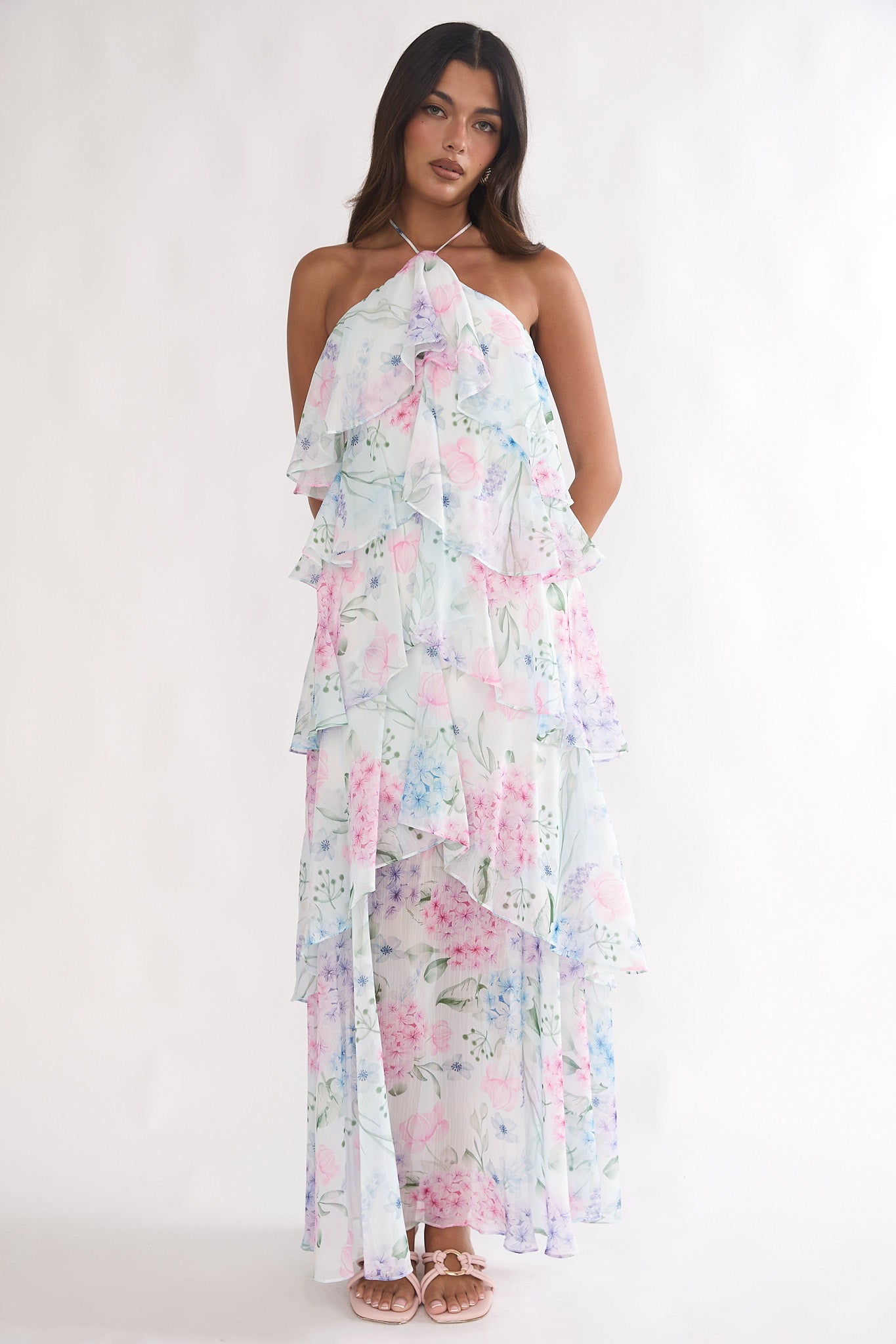 Steal the spotlight in our gorgeous Darylyn maxi dress. It has a halter design and the cutest tiered ruffles throughout. It's perfect for a special event or birthday celebration. Team it with strappy heels and a clutch for an elegant look.