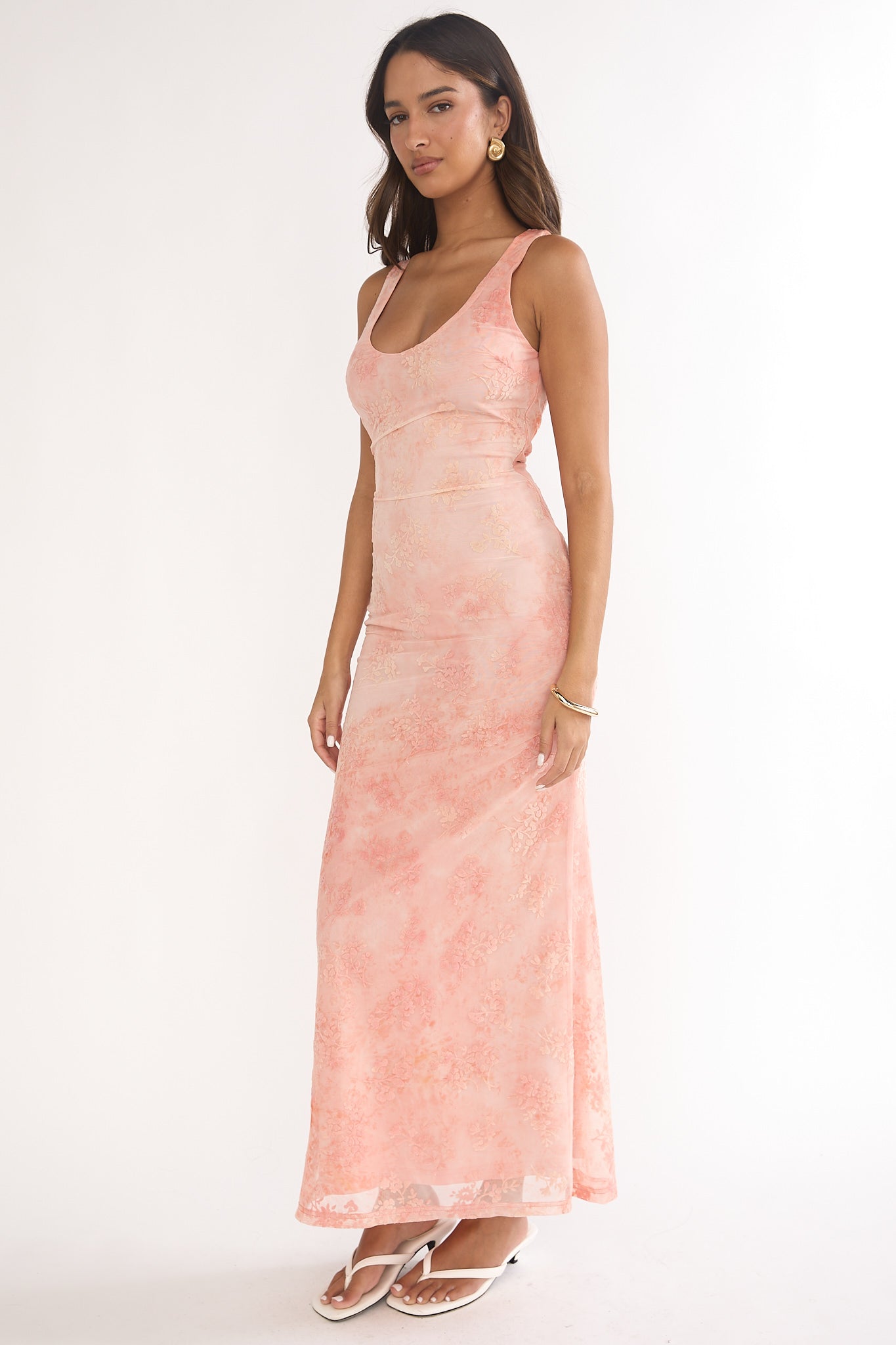 Steal the spotlight in our stunning Elowra maxi dress. It features a mesh overlay with romantic floral details and is perfect for a work party or birthday celebration. Team it with strappy heels and a purse for an unforgettable look.