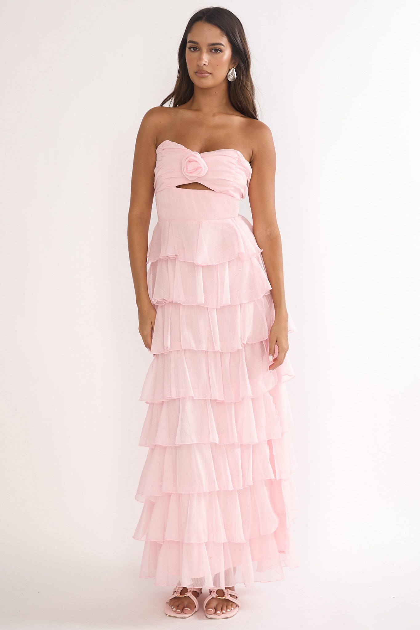 Turn heads in our stunning Janelia maxi dress. It features layered frills and a strapless design and is perfect for a wedding or special event. Team it with nude heels and a clutch for an unforgettable look.