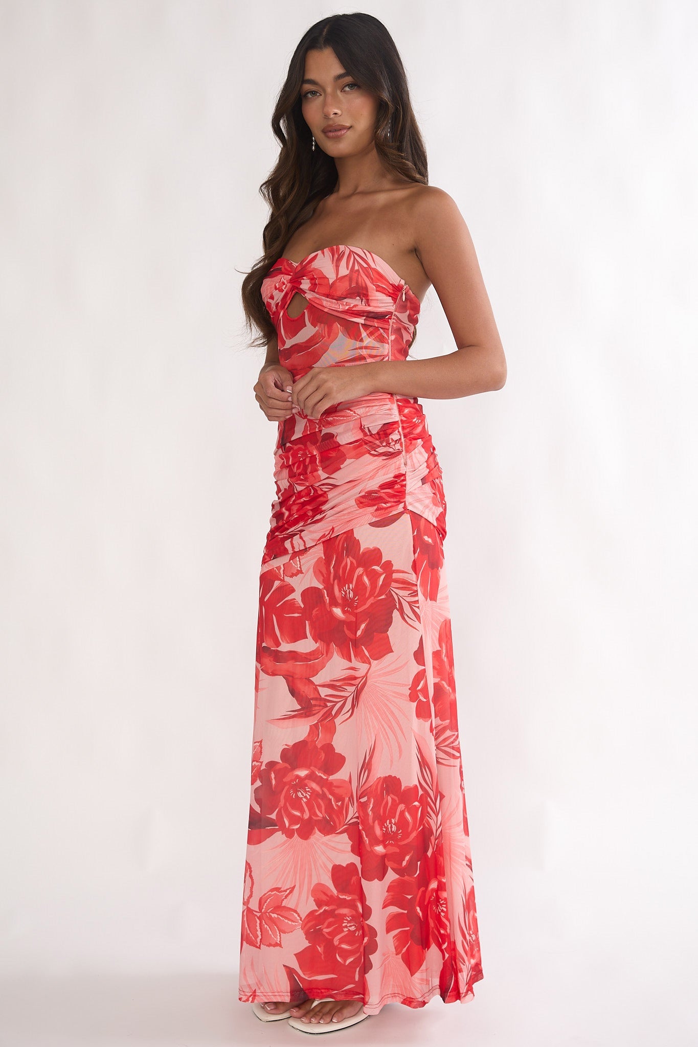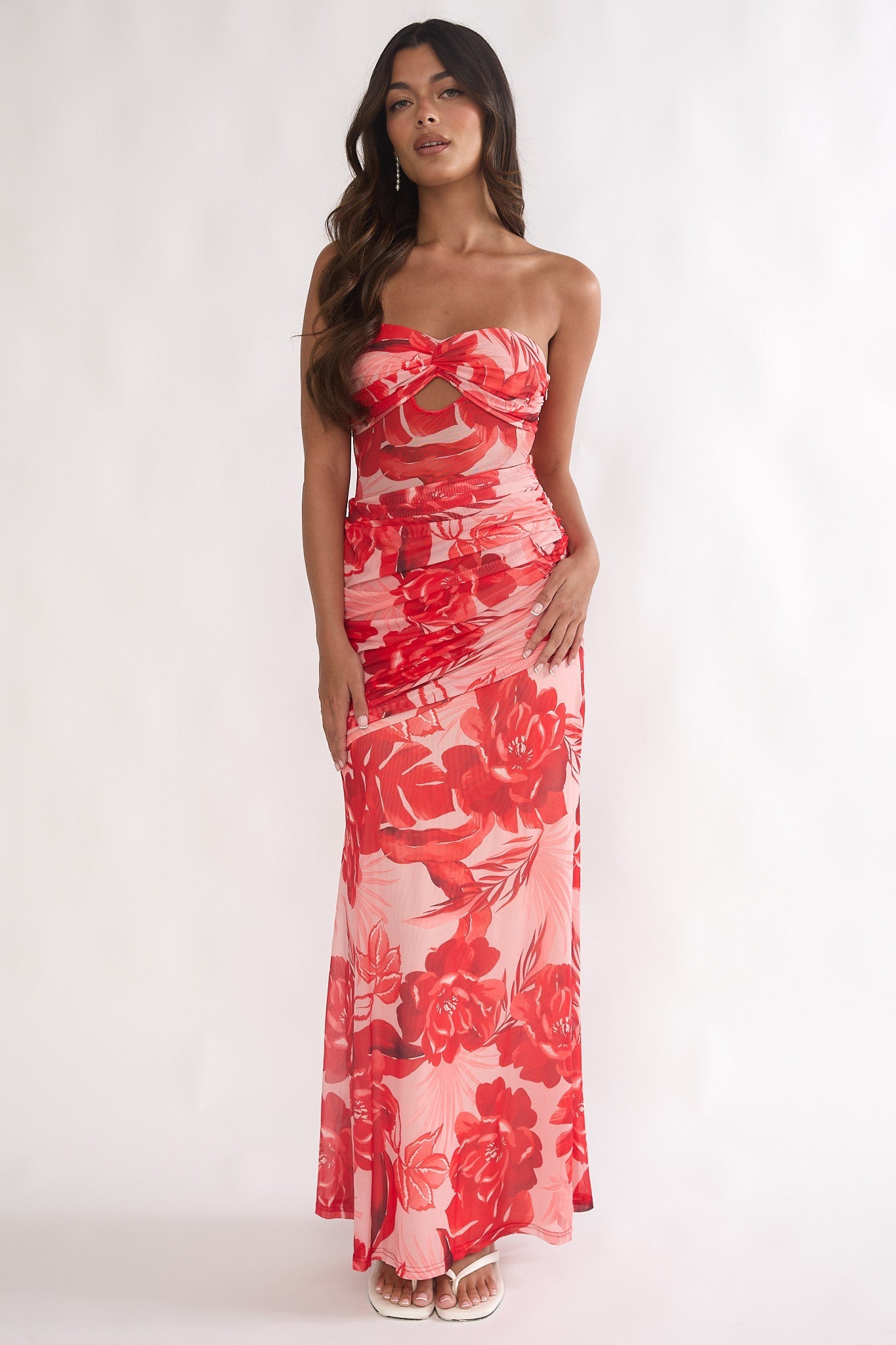Make an entrance in our adorable Kallira maxi dress. We are obsessed with its subtle sweetheart neckline and ruching detail. Wear it to a special event teamed with silver heels and a purse for an unforgettable look.
