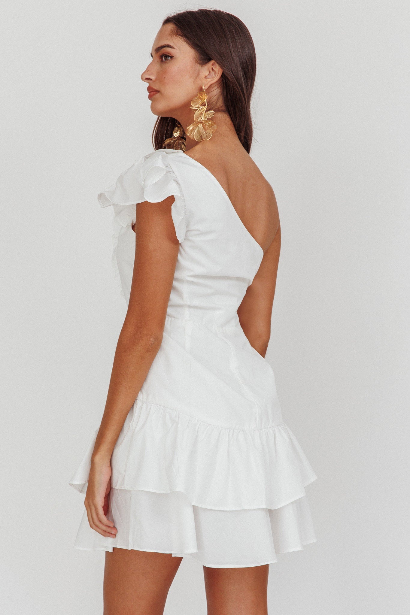 Twirl through your day in our pretty Koko dress. Featuring a one-shoulder design and ruffle trim. It's perfect for Sunday brunch with your besties teamed with mules and a tote for a look we are loving.