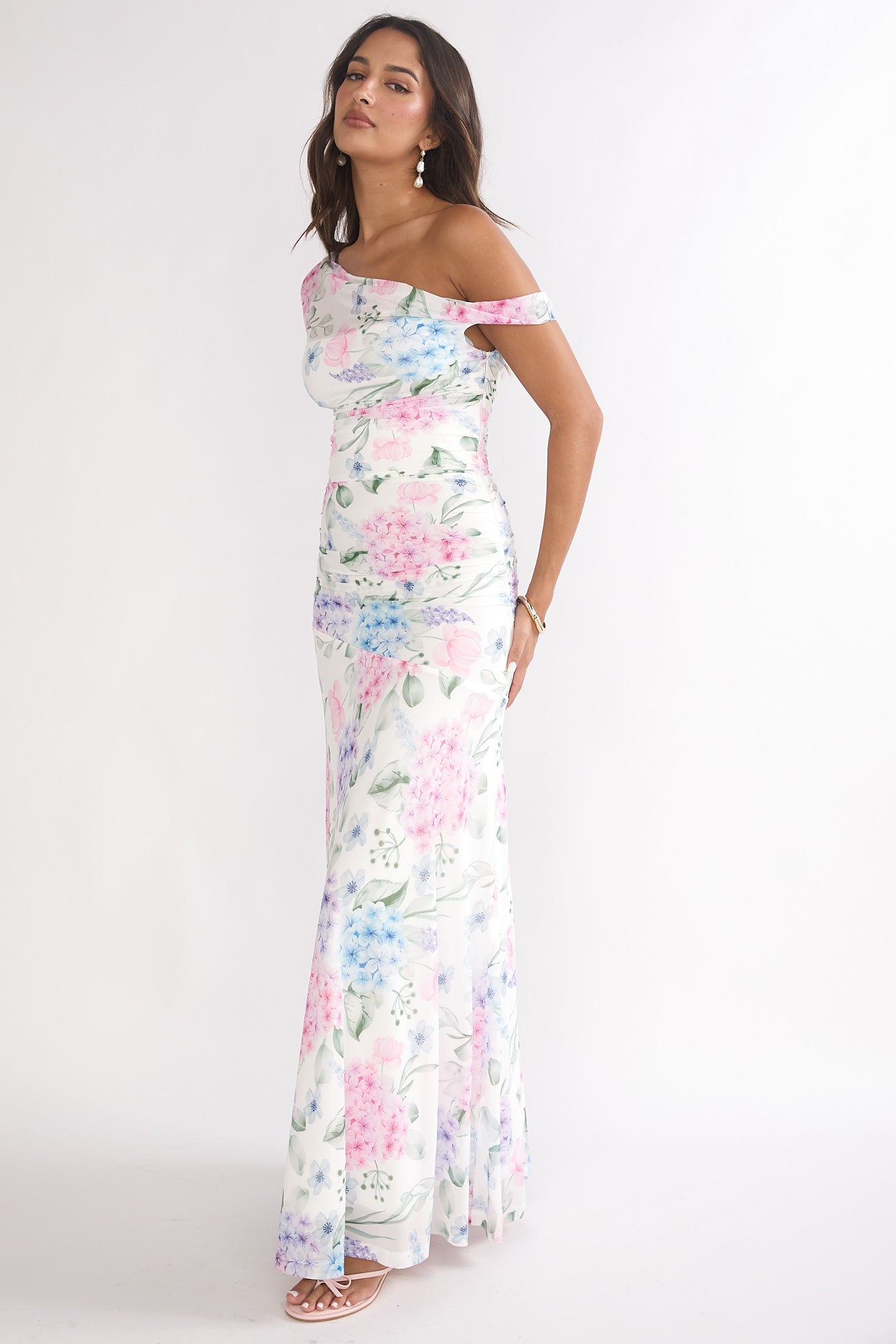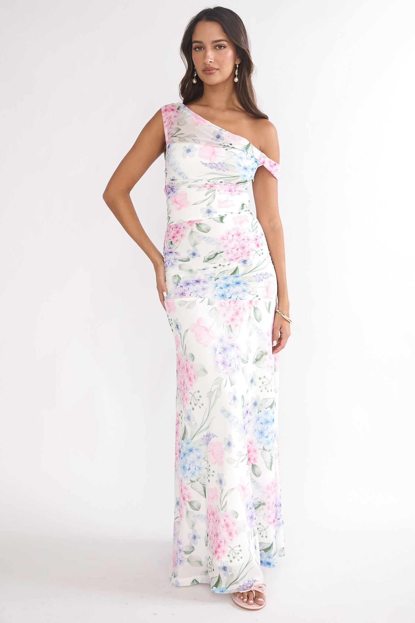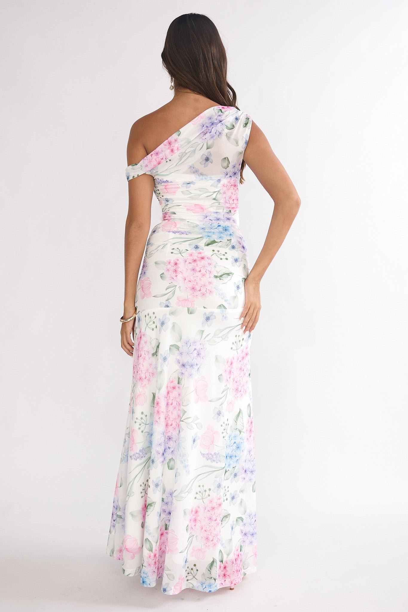 We are head over heels for our gorgeous Lylah maxi dress. It features an asymmetric neckline and a mesh overlay. Wear it to a wedding or special event, teamed with nude heels and a clutch for an unforgettable look.