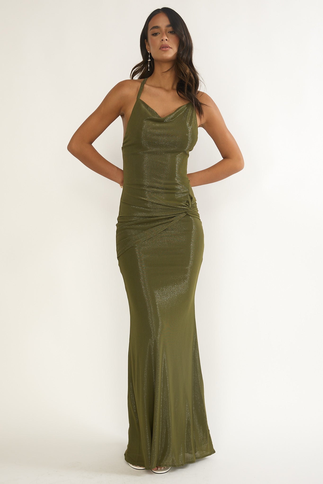 Turn heads in our gorgeous Oralia maxi dress. We are in love with its figure-hugging silhouette and tied back. It's perfect for a glam party teamed with heels and a purse for a look that'll turn heads.