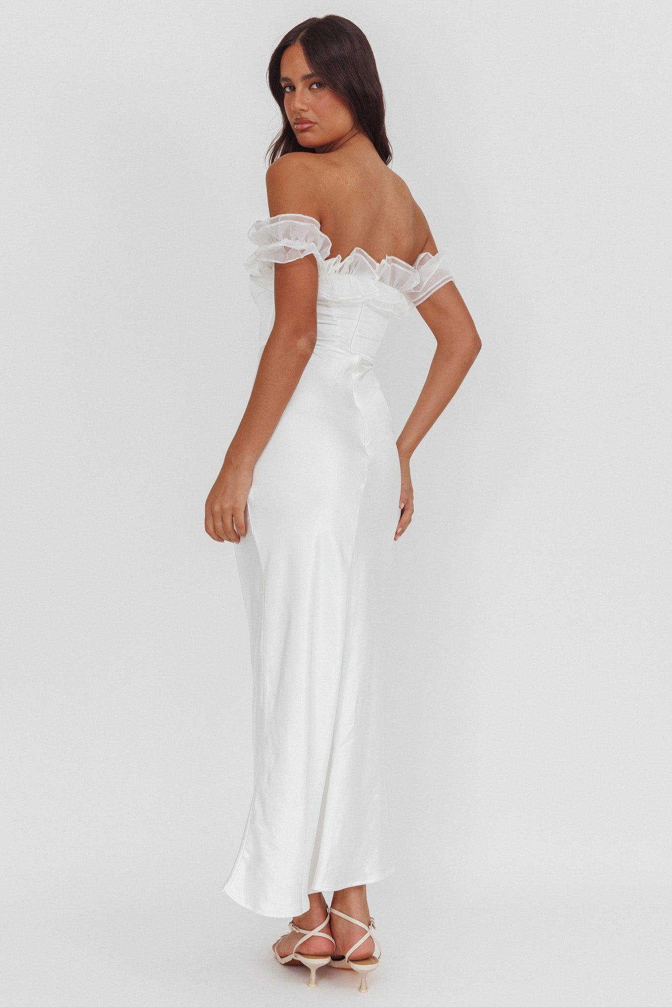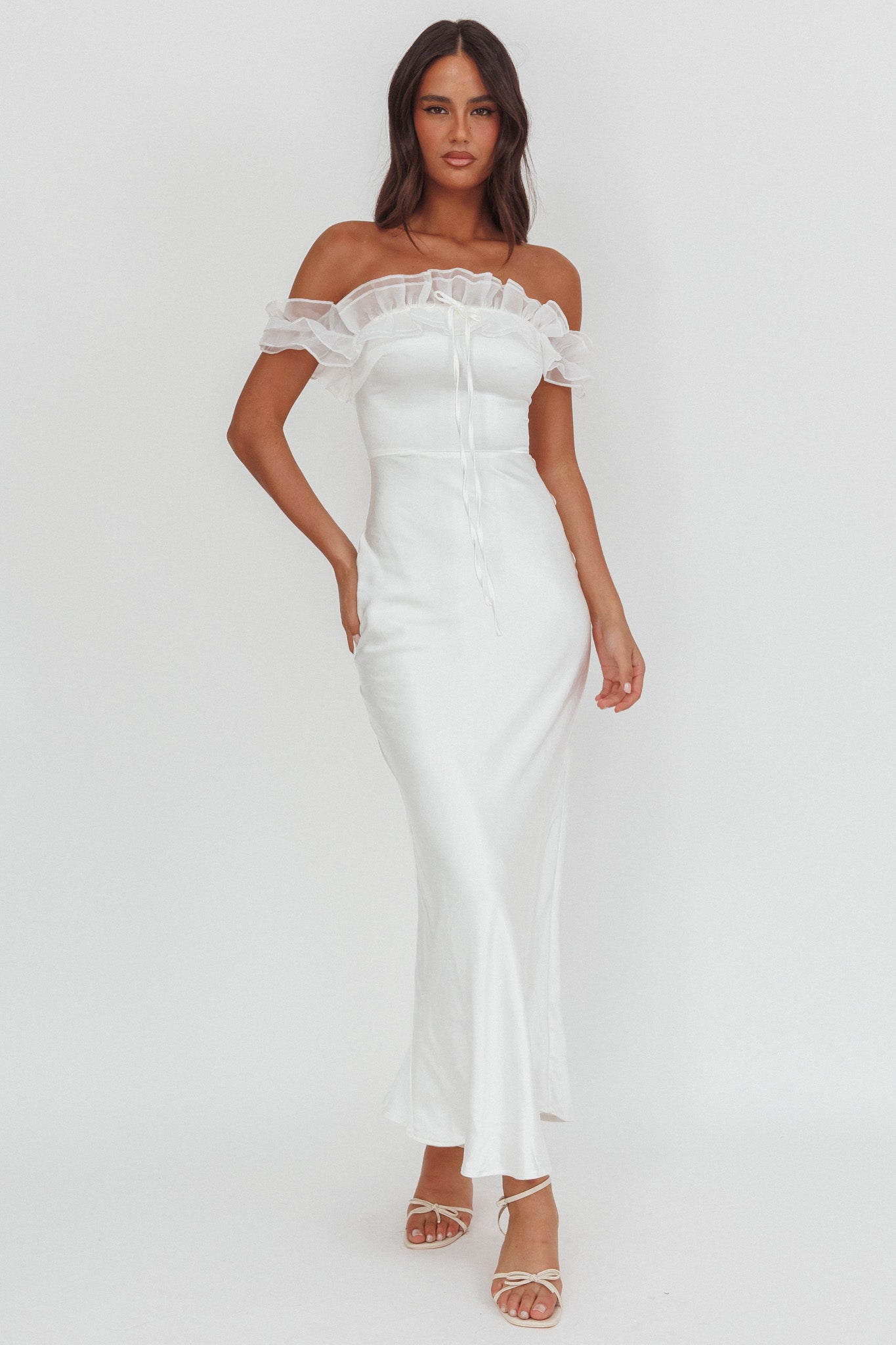 Make an entrance in our stunning Summerfield maxi dress. It features an off-shoulder design and super cute frill detail. Perfect for a wedding or special occasion teamed with heels and a clutch for an elegant look.
