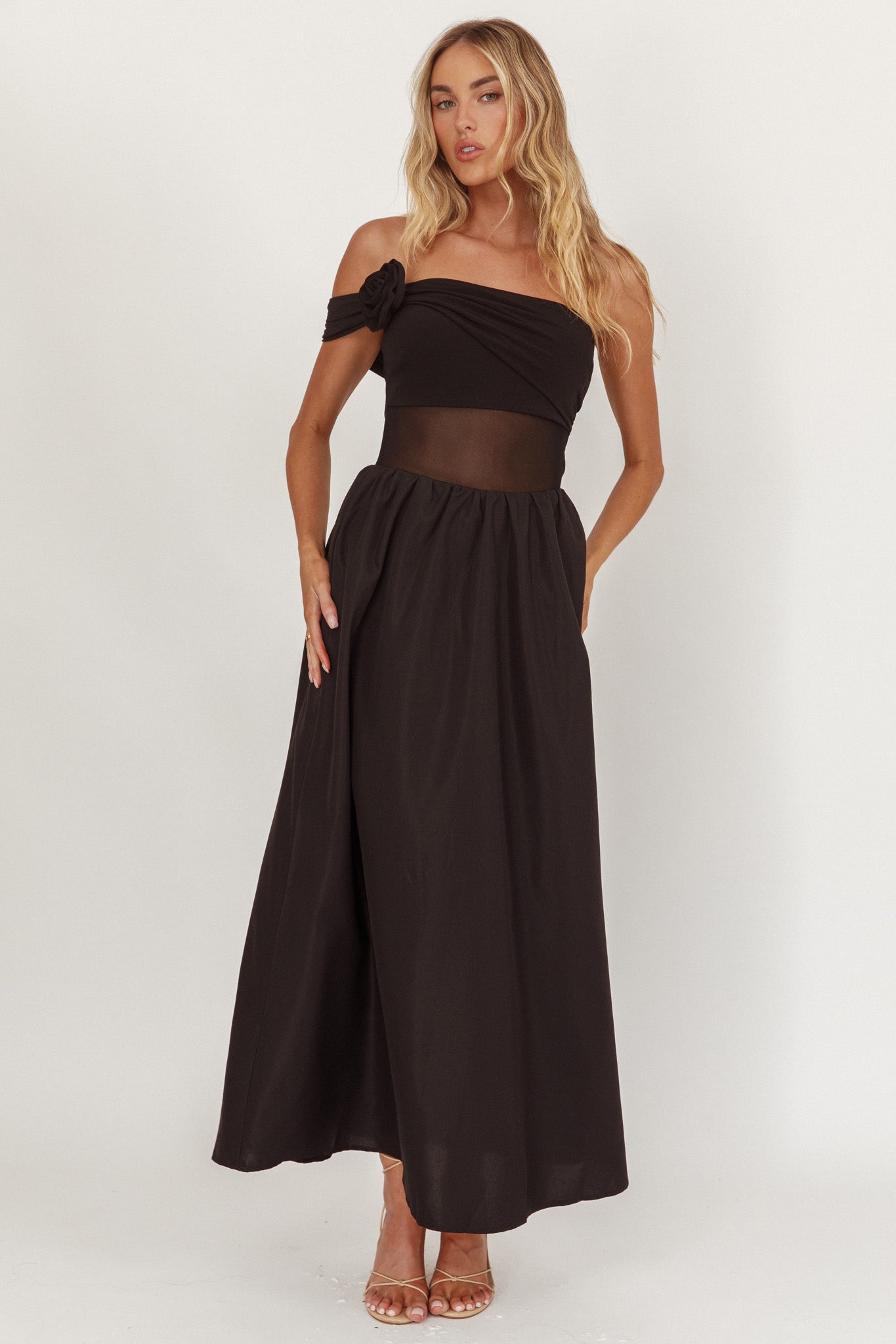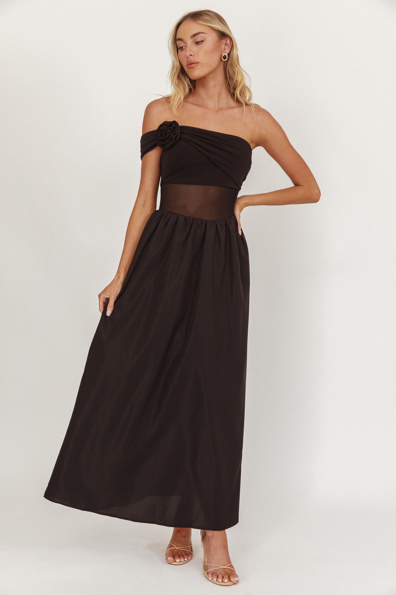 Make your grand entrance in our show-stopping Uma midi dress. It features a sheer panel in the waist and chic, one-sleeve design. Wear it to a wedding or black tie event teamed with strappy heels and a clutch for an unforgettable look.